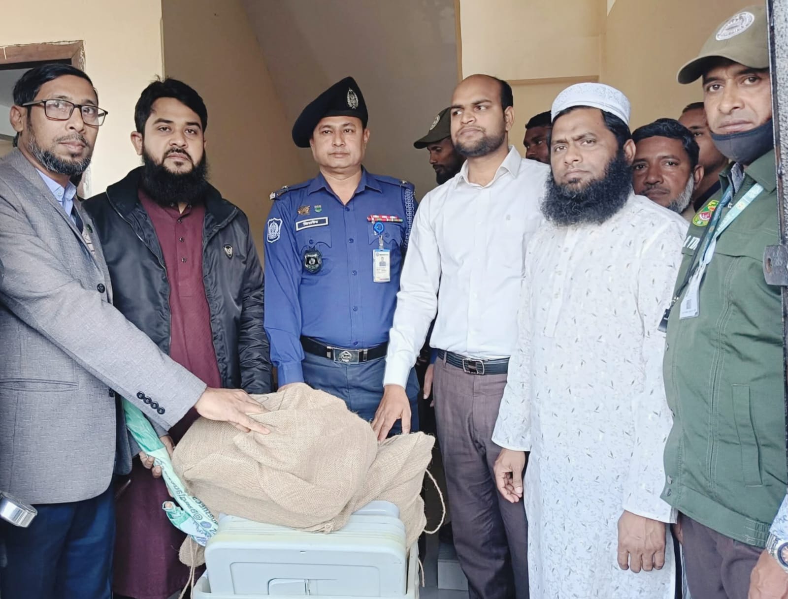 পোরশায় কেন্দ্রে কেন্দ্রে যাচ্ছে নির্বাচনের সরঞ্জাম